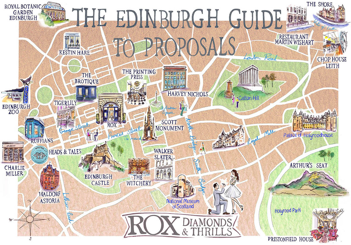 ROX Diamonds & Thrills are on hand to help anyone planning an Edinburgh proposal, with a handy guide to the city’s most romantic and iconic places. Simply click on the individual locations on the map to reveal top tips and information about this incredible city.