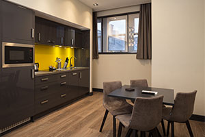 Our apartment was fantastic, spacious, and very well equipped with a luxurious feel. It had a very comfy bed, a spacious bathroom, a kitchen/dining area with a fridge, microwave/grill and a 2-ring hob. There was also a sofa, 2 TV’s and some complimentary soft drinks and snacks. The overall feeling was comfortable, spacious with a modern décor.