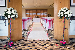 The first thing you notice when walking through the doors is that everyone is doing their utmost to relax – most guests are white dressing-gown clad and bound for the spa, swimming pool area or the glass-roofed courtyard bar. Decorated in light colours to enhance the natural daylight of the spaces, the interiors is beautifully modern and the hotel is impeccably maintained. Thorpe Park - wedding venue - ceremony room